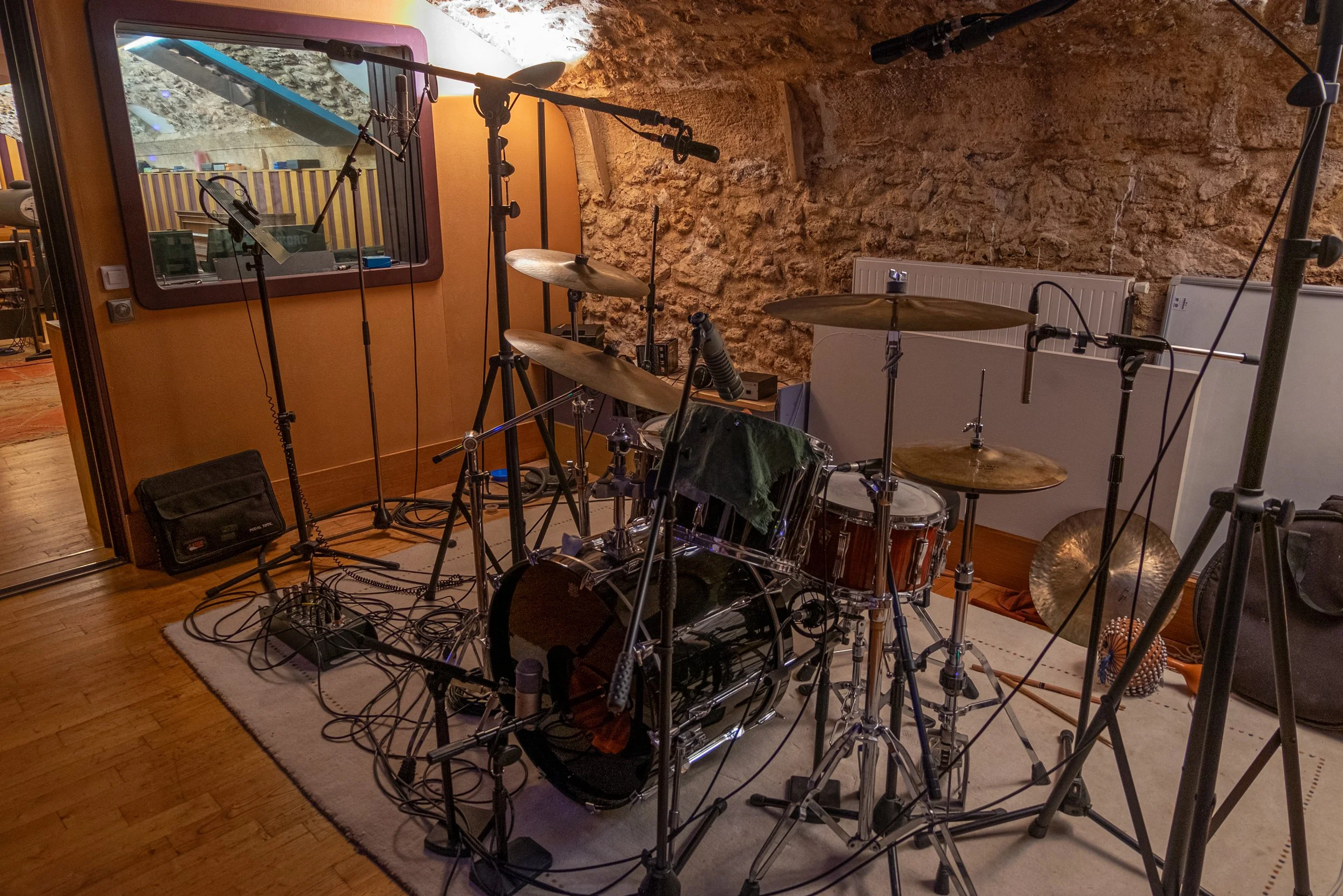The studio is located in the Belleville area in Paris, designed by renowned acoustic engineer JP Lafont, the large control room has very controlled acoustic properties providing an excellent environment for mixing and we also have a separate live room for drums, vocals guitar amps etc..